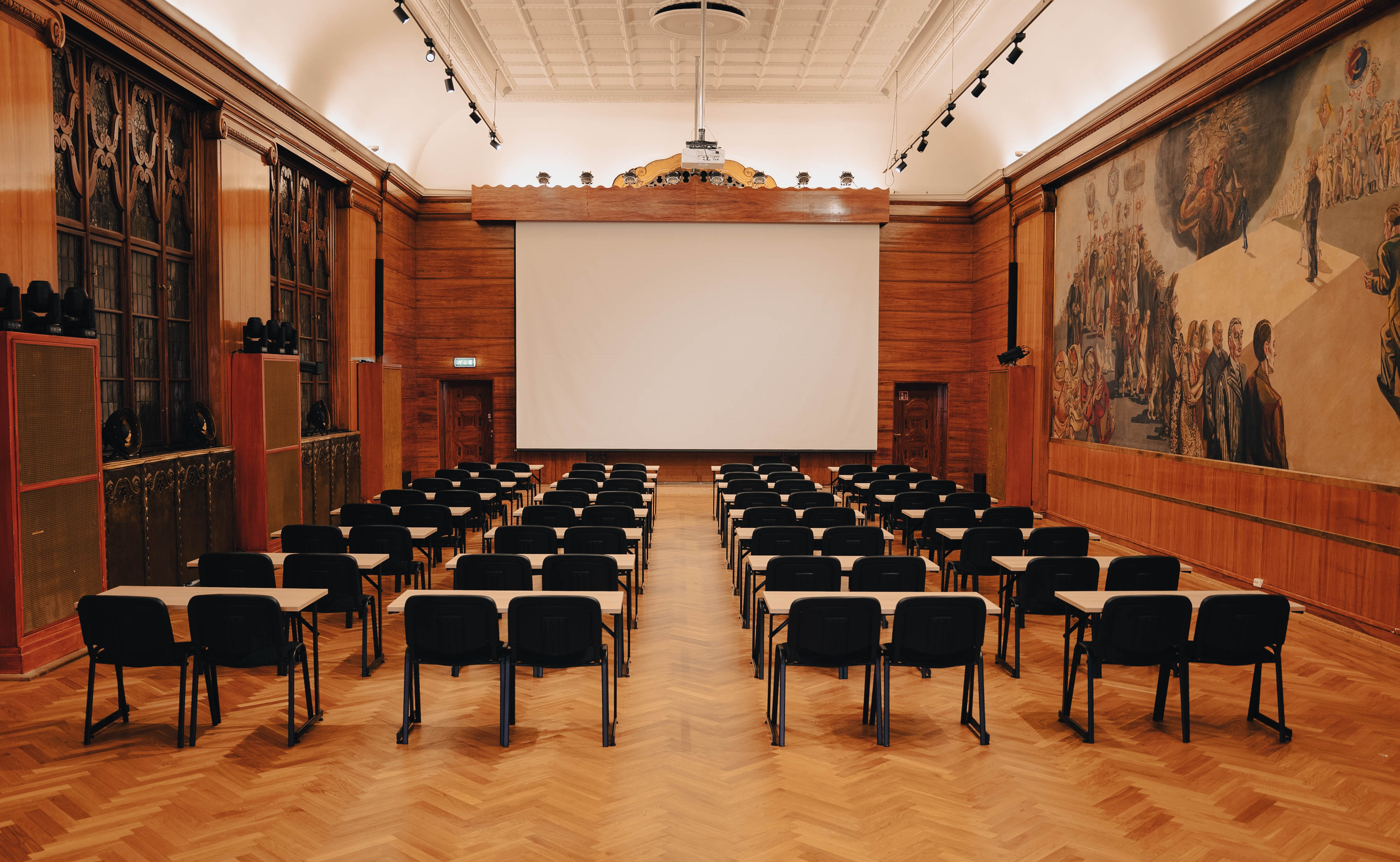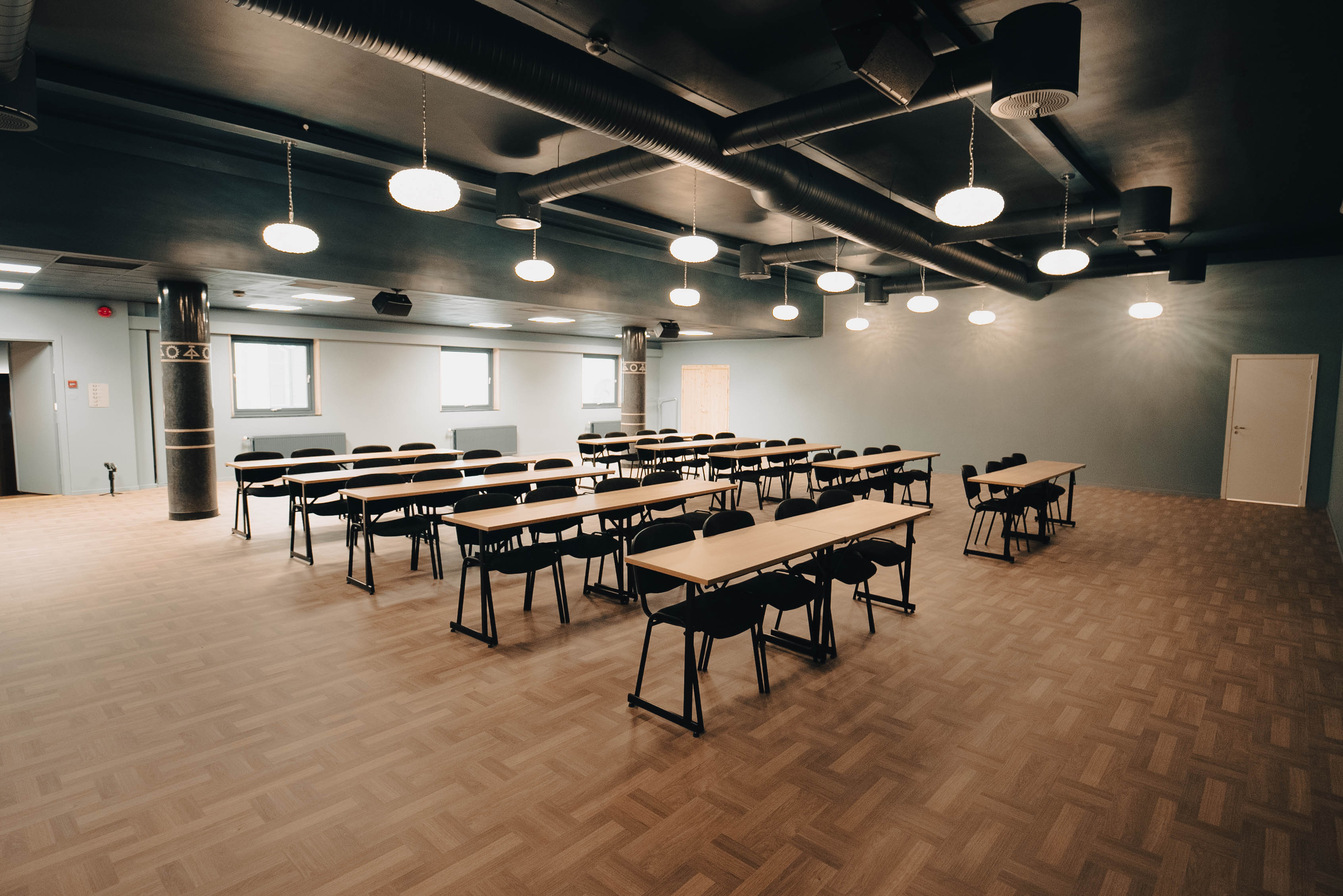 For større møter og konferanser tilbyr vi i tillegg flotte lokaler i bygget rett over gaten fra hotellet – kun ett minutts gange. Her finner du fleksible rom med moderne teknisk utstyr og plass til alt fra små grupper til store forsamlinger: