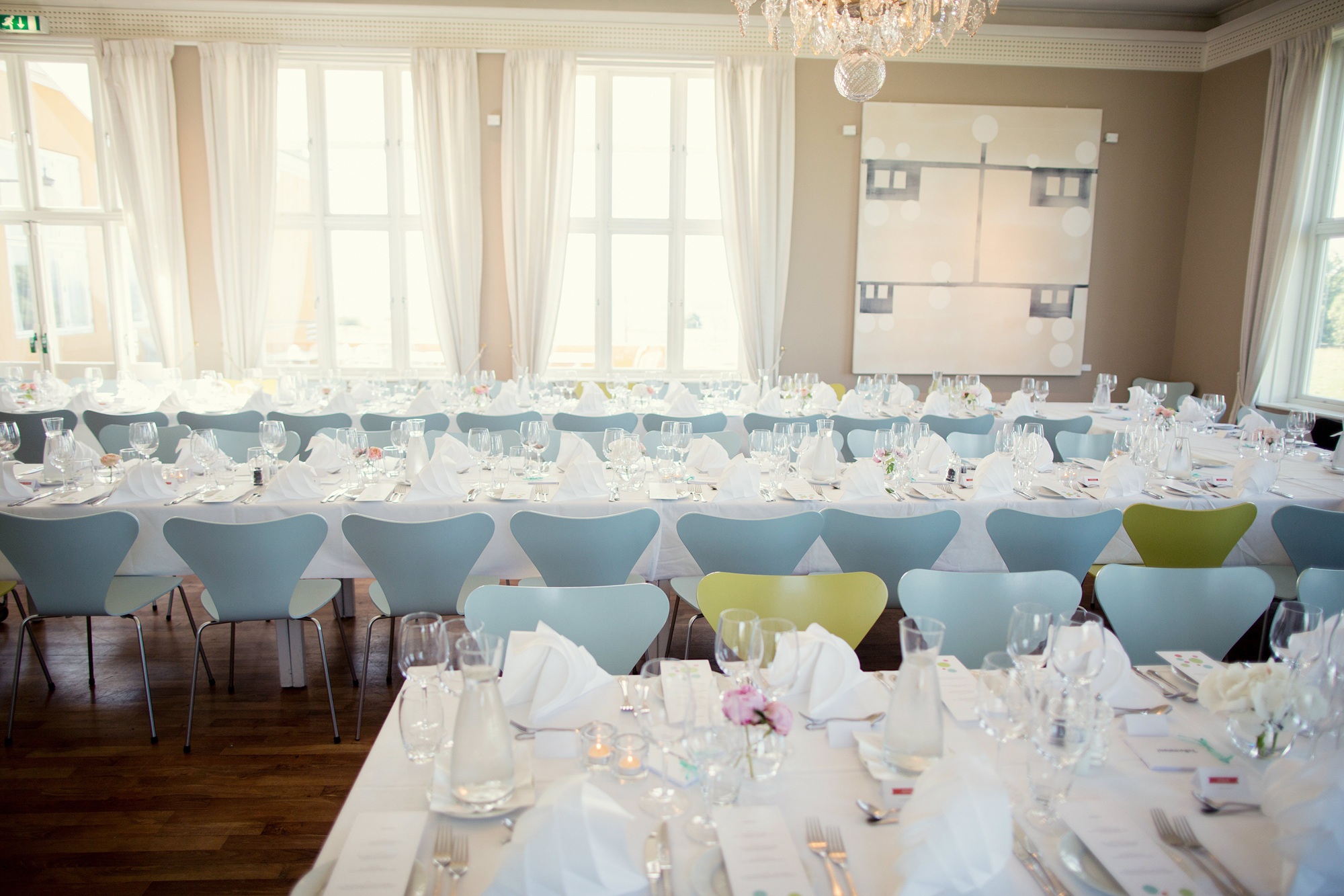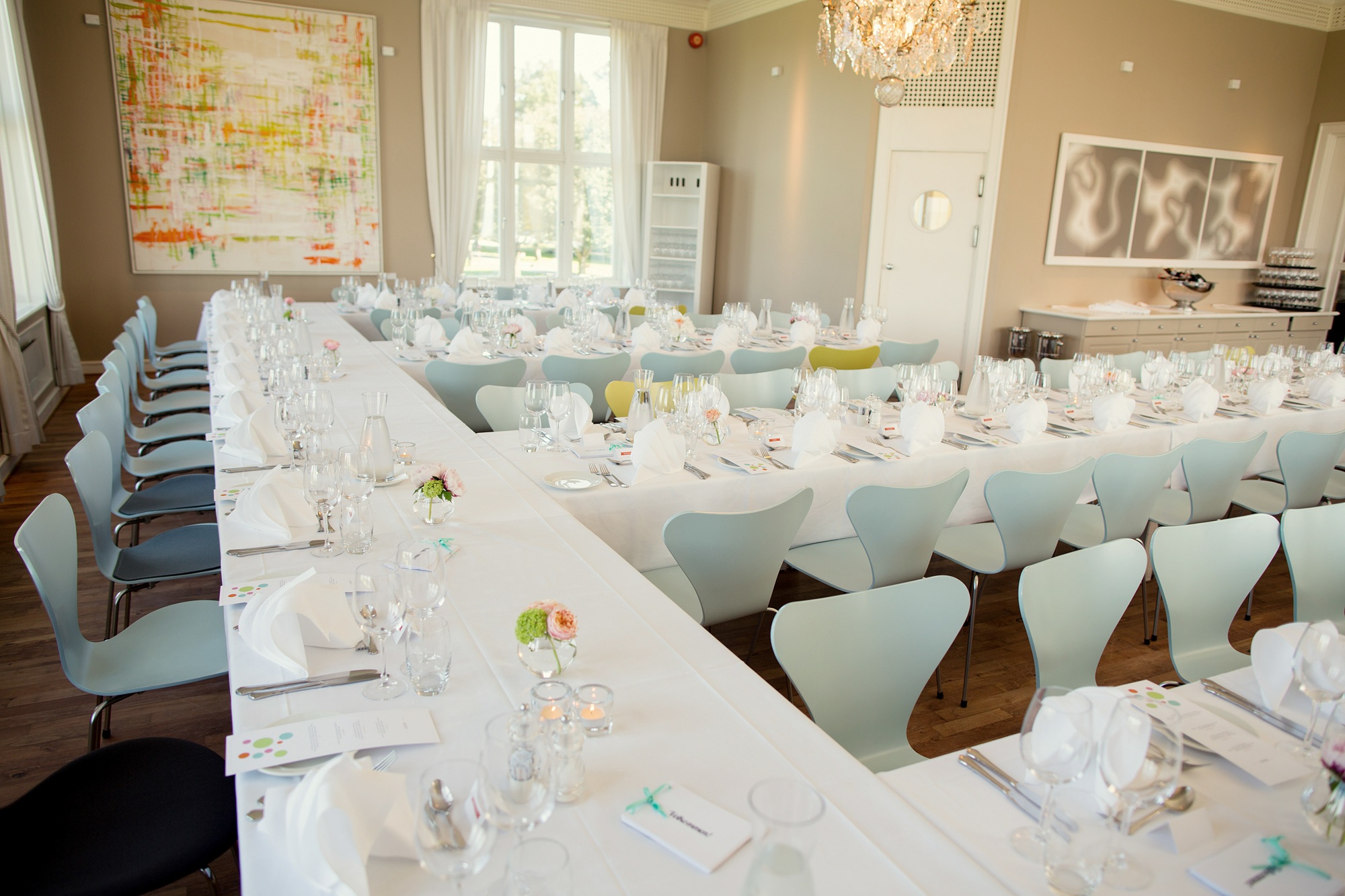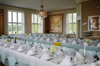 Hotellet byr på flere ulike selskapsrom. Restauranten Himmel og Hav har kapasitet til store arrangementer, mens de mer intime rommene gir gode rammer for mindre grupper. Når været tillater det, åpner hagen for servering og seremonier ute i det grønne.