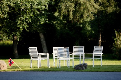 For par som ønsker å gi løftene sine i naturen, ligger hagen klar som en naturlig seremoniarena. Med utsyn mot fjorden og et landskap som endrer seg med årstiden, får vielsen en ramme som gjør dagen både høytidelig og personlig.