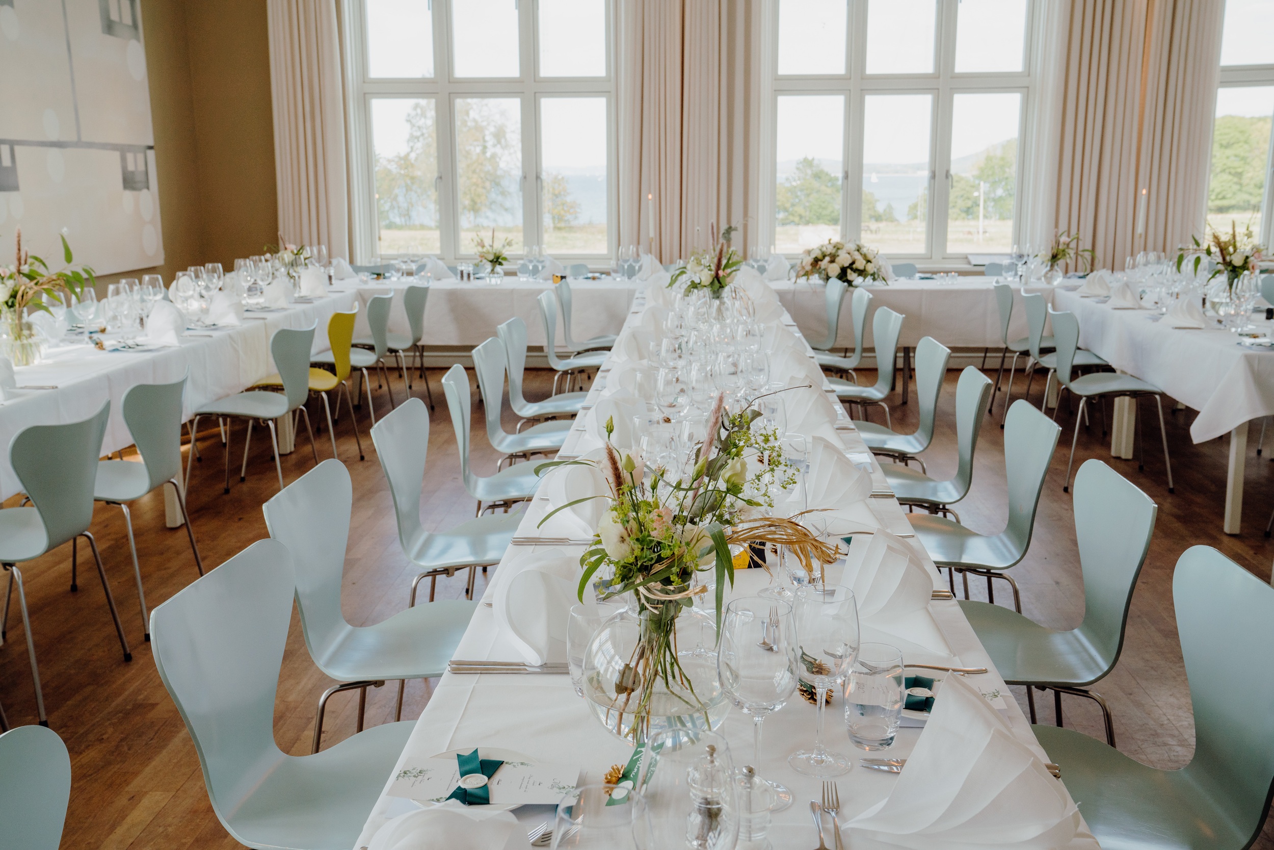 Bryllupsfesten kan holdes i restauranten, i chambre séparée eller i kombinasjon med salong. Her er det rom for både dans, musikk og romantikk - der sene kvelder blir til minner for livet. Det er også mulig å leie hele stedet. Da er hus, hage og utsikt kun deres, - et eget eventyr ved fjorden.